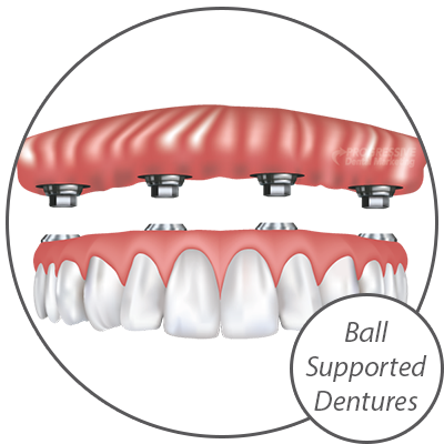Dentures can slip in the mouth & you may find yourself "repositioning" them throughout the day. Dental implants are fixed securely in place so you don't have to worry about them moving around.